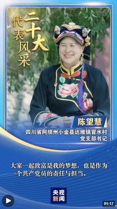“二十大代表風(fēng)采”一起來認(rèn)識四川省阿壩州小金縣達(dá)維鎮(zhèn)冒水村黨支部書記陳望慧。