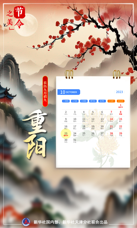 新華社天津10月22日電(記者周潤健)“九日黃花酒,登高會昔聞?!?0月23日,農(nóng)歷九月初九,重陽節(jié)。歲歲重陽,今又重陽。農(nóng)歷九月初九緣何是重陽?其中蘊含著怎樣的“數(shù)字密碼”?