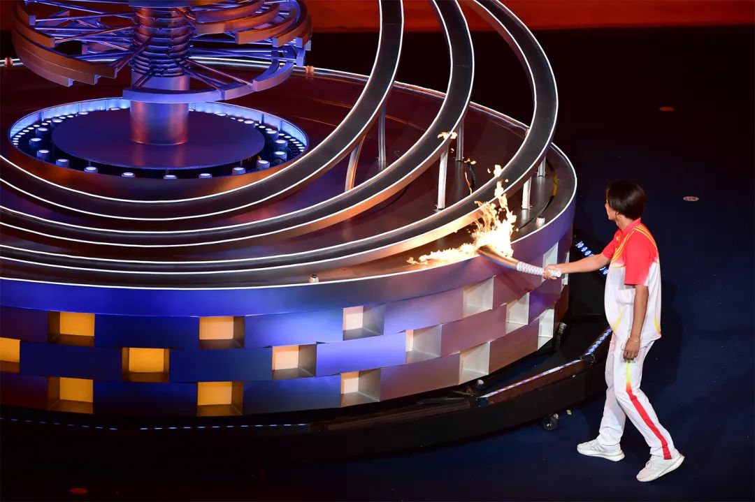 開幕式之夜,最為激動(dòng)人心的就是點(diǎn)火時(shí)刻。在射擊世界冠軍張益梵、鄉(xiāng)村干部王春、環(huán)衛(wèi)工人孫秀蘭、大國(guó)工匠官生花、公交司機(jī)馮冰依次傳遞過后,火炬來到了最后一棒火炬手、北京冬奧會(huì)冠軍蘇翊鳴的手中。主火炬塔點(diǎn)火裝置以山西民俗“旺火”為設(shè)計(jì)依據(jù),采用清潔能源“微火”點(diǎn)燃的方式。蘇翊鳴手持火炬,在萬眾矚目之下,以“微火”點(diǎn)“旺火”,歷史、現(xiàn)在與未來,在這一刻融匯賡續(xù)。