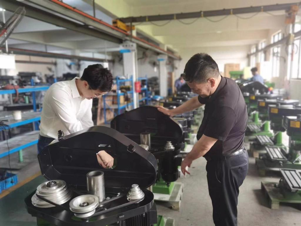 受疫情影響,2021年外貿(mào)企業(yè)訂單量隨著海運放緩、海外需求下降而減少。生產(chǎn)閑下來了,但繆繼云和兒子繆帥濤對產(chǎn)品改良的思考沒有停止。在不斷調(diào)試臺鉆時,他們發(fā)現(xiàn),調(diào)速必須動手換皮帶,“為什么不能像調(diào)收音機(jī)一樣調(diào)動速率呢?”兩人一商量,立即開始畫草圖,接著去銀行貸款投入模具開發(fā)。