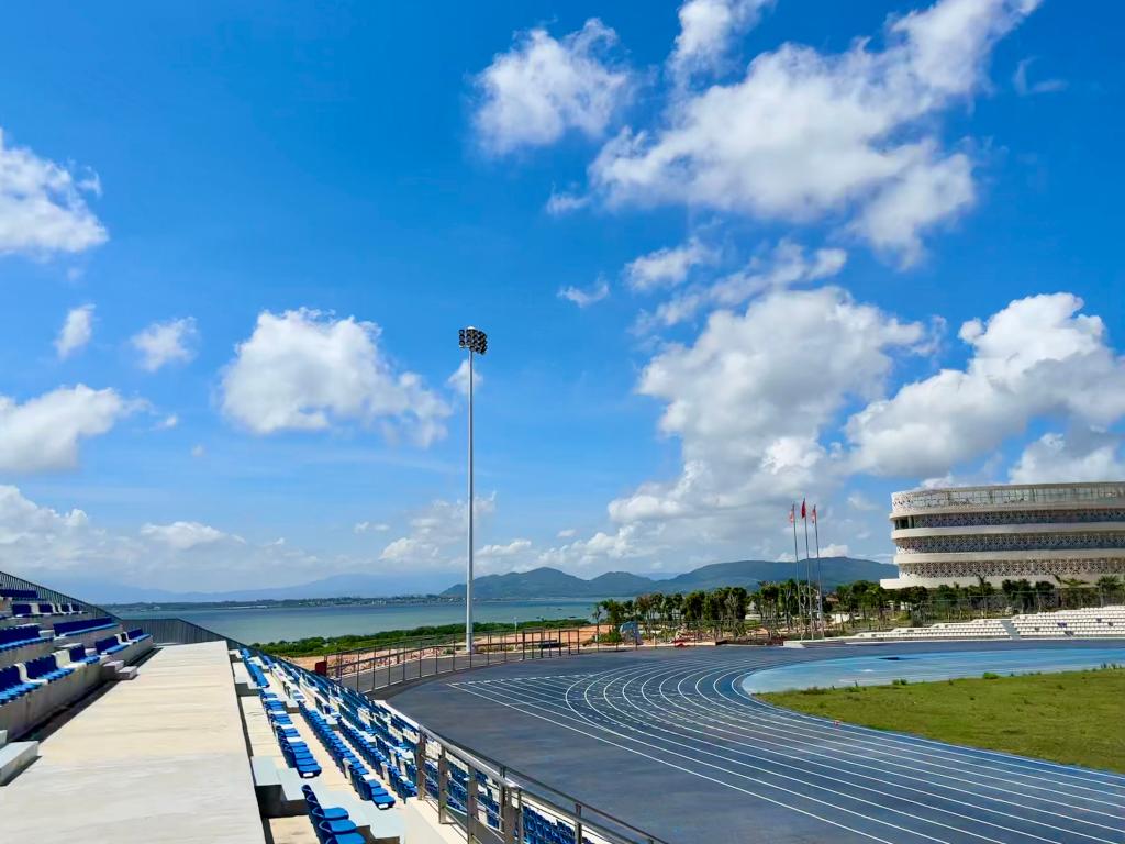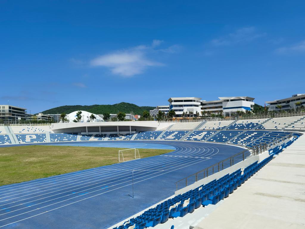 6月27日在海南陵水拍攝的國際教育創(chuàng)新試驗區(qū)園區(qū)內(nèi)的運動場。新華社記者 劉勇貞 攝