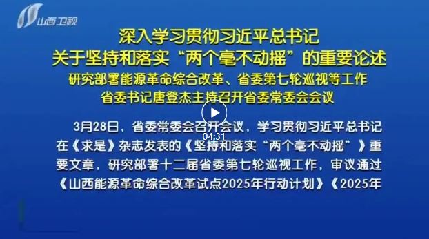 山西日報(bào)報(bào)道 3月28日,省委常委會召開會議,學(xué)習(xí)貫徹習(xí)近平總書記在《求是》雜志發(fā)表的《堅(jiān)持和落實(shí)“兩個(gè)毫不動搖”》重要文章,研究部署十二屆省委第七輪巡視工作,審議通過《山西能源革命綜合改革試點(diǎn)2025年行動計(jì)劃》《2025年省委黨內(nèi)法規(guī)制定計(jì)劃》。省委書記唐登杰主持會議。