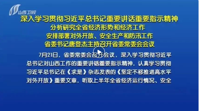 7月21日,省委常委會(huì)召開(kāi)會(huì)議,深入學(xué)習(xí)貫徹習(xí)近平總書(shū)記對(duì)山西工作的重要講話重要指示精神,認(rèn)真學(xué)習(xí)貫徹習(xí)近平總書(shū)記在《求是》雜志發(fā)表的《堅(jiān)定不移推進(jìn)高水平對(duì)外開(kāi)放》重要文章,聽(tīng)取上半年全省經(jīng)濟(jì)運(yùn)行情況、安全生產(chǎn)形勢(shì)和防汛工作情況匯報(bào),研究部署下一步工作,審議通過(guò)《關(guān)于嚴(yán)格落實(shí)“四水四定”的實(shí)施方案》。省委書(shū)記唐登杰主持會(huì)議。
