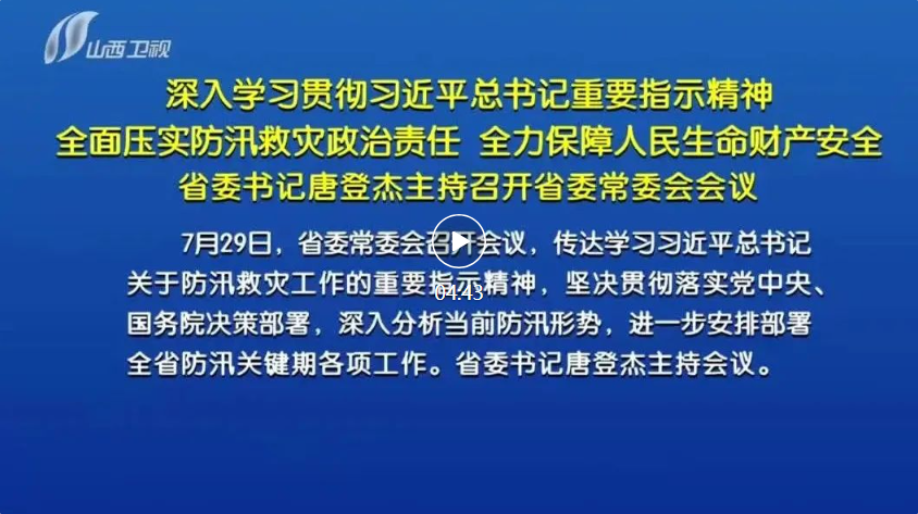 深入學習貫徹習近平總書記重要指示精神 全面壓實防汛救災政治責任 全力保障人民生命財產安全 省委書記唐登杰主持召開省委常委會會議