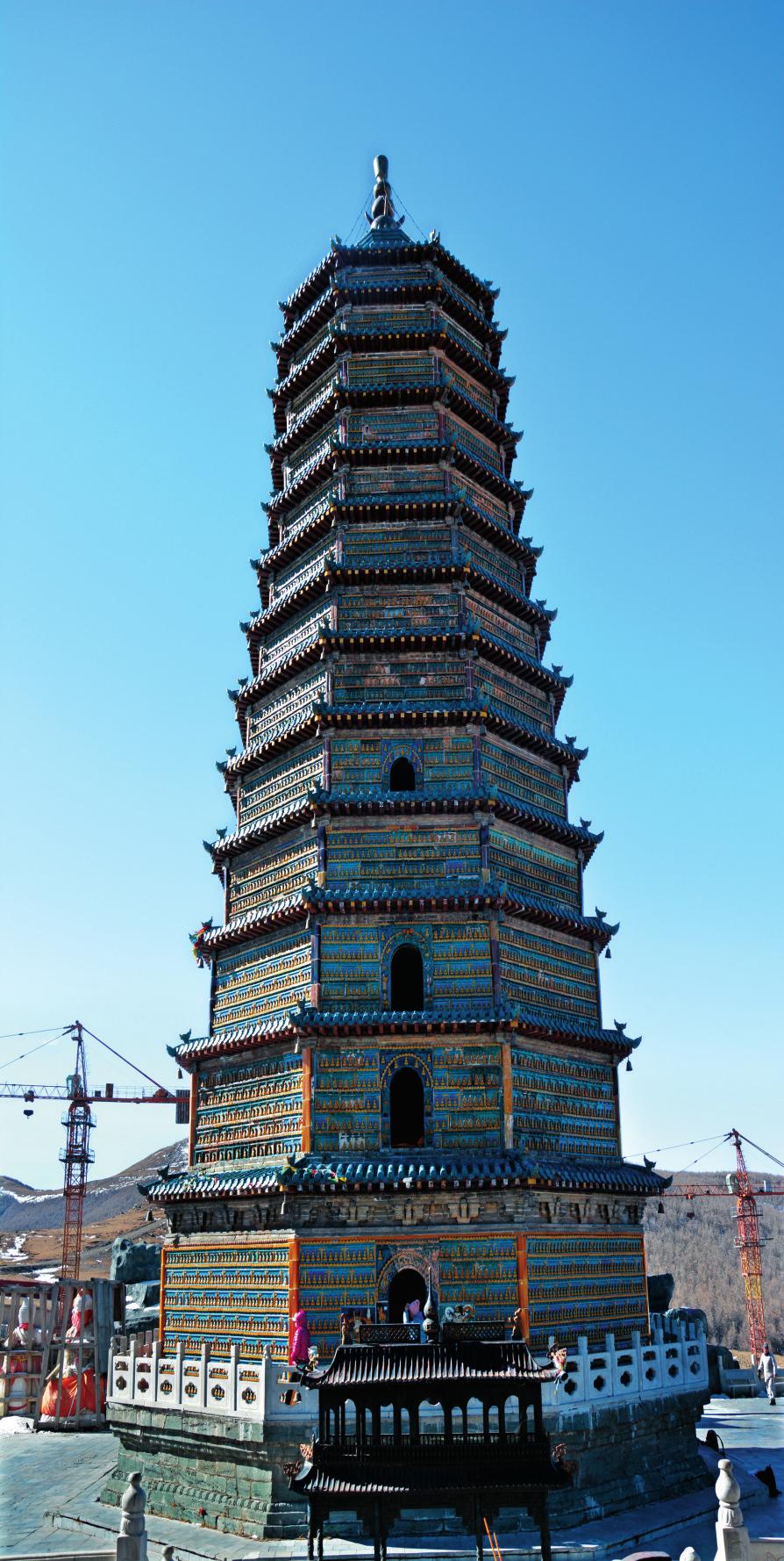 繁峙琉璃塔據(jù)五層塔銘記載為明萬歷二十七年(公元1599年)春季吉日造,萬歷三十二年(公元1604年)完工。造塔匠人王慶,直隸真定府定州城人。塔原坐落在五臺(tái)山大護(hù)國文殊寺中軸線上,在大雄寶殿之后,藏經(jīng)樓之前,是五臺(tái)山大護(hù)國文殊寺主要建筑之一?,F(xiàn)五臺(tái)山大護(hù)國文殊寺除繁峙琉璃塔為明代建筑外,其他都為新建。
