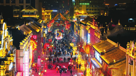 2月11日晚,太原市鐘樓街燈火通明、人頭攢動(dòng),一派喜氣洋洋的節(jié)日氣氛。春節(jié)到來(lái),省城街頭流光溢彩、彩燈高懸、夜景如畫,散發(fā)著濃濃年味。人們攜親伴友紛紛走上街頭,感受濃郁的節(jié)日氛圍。