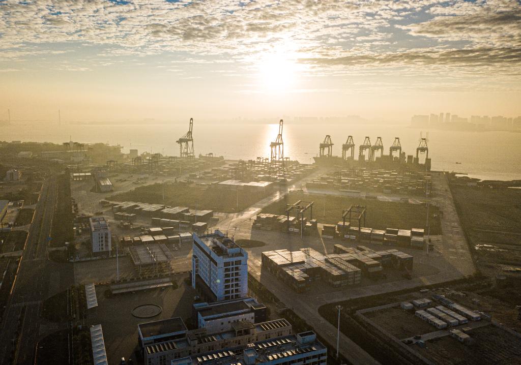2024年1月1日在海南省洋浦經(jīng)濟(jì)開發(fā)區(qū)拍攝的海南自貿(mào)港集裝箱航運(yùn)樞紐——洋浦國際集裝箱碼頭(無人機(jī)照片)。新華社記者 蒲曉旭 攝