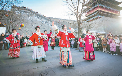 忻州古城南城門前的快閃表演。石薦文攝