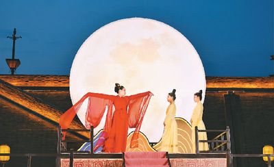 忻州古城北廣場的舞臺劇《貂蟬拜月》。王笑宇攝