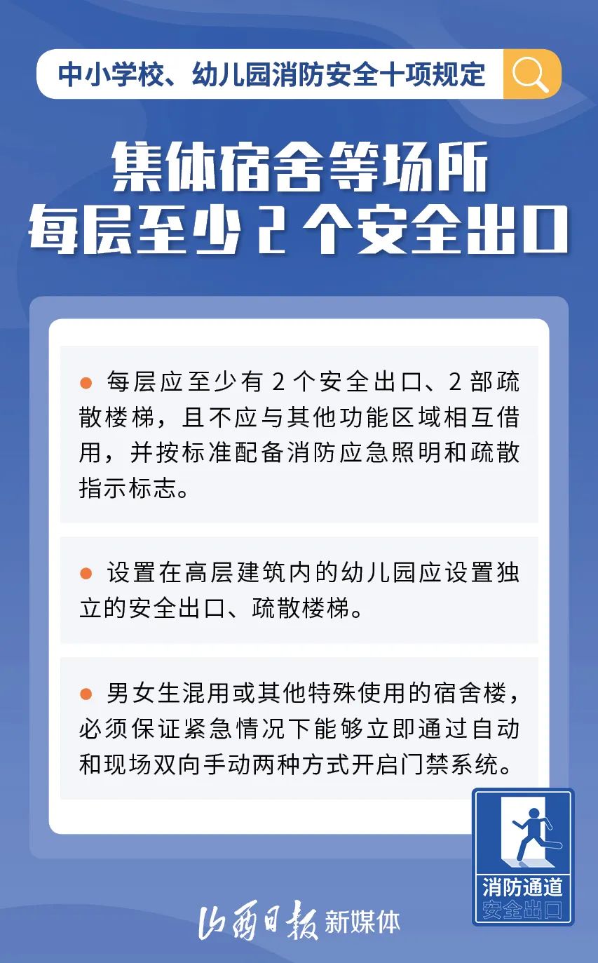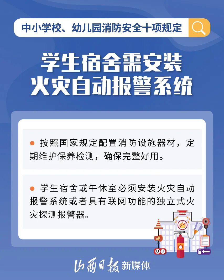 為加強中小學校、幼兒園消防安全管理,近日,教育部、國家消防救援局研究制定了《中小學校、幼兒園消防安全十項規(guī)定》,具體規(guī)定內容如下。