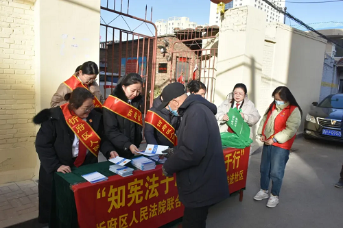 為進一步弘揚法治精神,發(fā)揮人民法院在基層社會治理中的積極作用,近日,忻府區(qū)法院與團東社區(qū)聯(lián)合開展“知憲法于心,守法律于行”憲法宣傳活動。