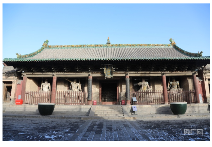 鎮(zhèn)國(guó)寺創(chuàng)建于五代時(shí)北漢天會(huì)七年,即公元963年,系皇家赦建,距今已有一千余年的歷史。現(xiàn)存五代、元、明、清各時(shí)期建筑44間,彩塑51尊,壁畫(huà)100余幅。
