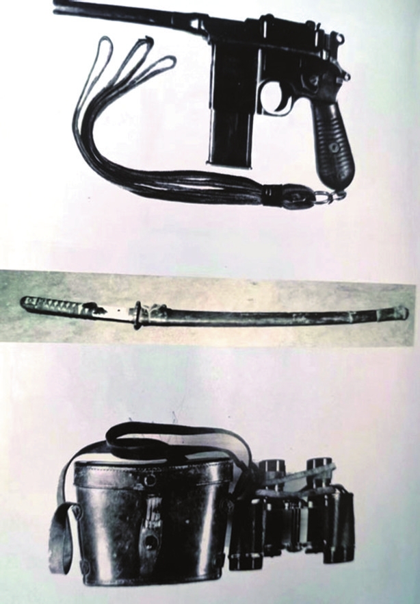 趙正午在與日寇和偽軍的戰(zhàn)斗中,使用最多的是三種武器,即手槍、大刀和望遠(yuǎn)鏡。手槍,該槍型于1895年經(jīng)改裝后由一次性裝10發(fā)子彈發(fā)射變成20發(fā)。這種槍管長(zhǎng)約140毫米,口徑7.63毫米。由于槍套是一個(gè)木盒,故又稱這種槍為“匣子槍”“盒子炮”,或“駁殼槍”。八路軍和游擊隊(duì)在抗戰(zhàn)時(shí)期廣泛使用。大刀,刀身采用鎳合金鋼材機(jī)械加工,刀身開設(shè)血槽,刀柄大部分為木質(zhì),全長(zhǎng)101.8厘米??箲?zhàn)期間,日軍不少軍刀被我八路軍和游擊隊(duì)繳獲,成為我對(duì)敵作戰(zhàn)的武器之一。當(dāng)年,趙正午在戰(zhàn)斗中繳獲了一把這款軍刀。望遠(yuǎn)鏡,德國(guó)于1920年前后研制生產(chǎn)的一種兩筒軍用望遠(yuǎn)鏡,具有較高的放大倍數(shù)和物鏡直徑,適合遠(yuǎn)距離觀察和戰(zhàn)場(chǎng)偵察??箲?zhàn)初期流入我國(guó),該望遠(yuǎn)鏡長(zhǎng)16厘米,寬11厘米。忻口戰(zhàn)役后,忻縣游擊隊(duì)在戰(zhàn)場(chǎng)上繳獲。