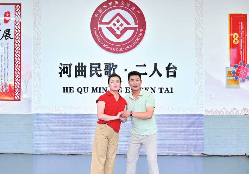 走進河曲縣白樸公園,一段清亮婉轉(zhuǎn)的唱腔便隨風入耳——河曲縣民歌二人臺藝術(shù)團演員鄔光正和同事們?nèi)橥度?,打磨大型非遺音樂劇《大河長歌》。他額角滲著細密的汗珠,當唱到“好兒女今日唱長歌,勝過了前輩了不得”時,突然停了下來,對搭檔說:“再來一遍,剛才那口氣沒頂滿?!边@份對細節(jié)的較真,藏著他對二人臺藝術(shù)最樸素也最深厚的敬畏。